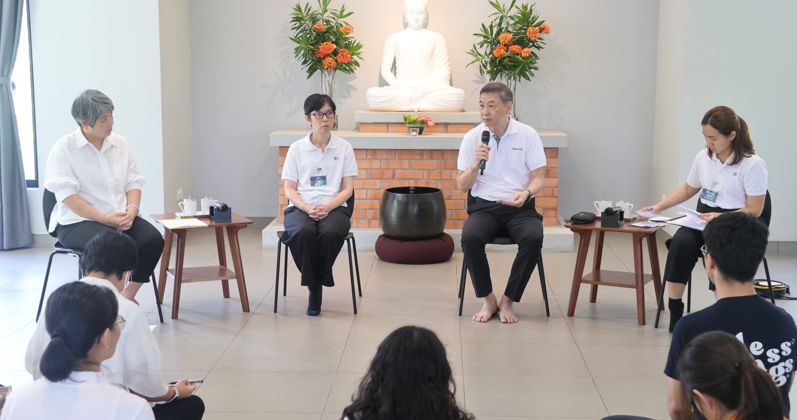 Guided by Sis. Santī Cheang and Sis. Sunandā Ong, the youths delved into the Mahā-Satipaṭṭhāna Sutta (MN 10) and put into practice mindfulness through meditations sessions, mindful walking and mindful eating.