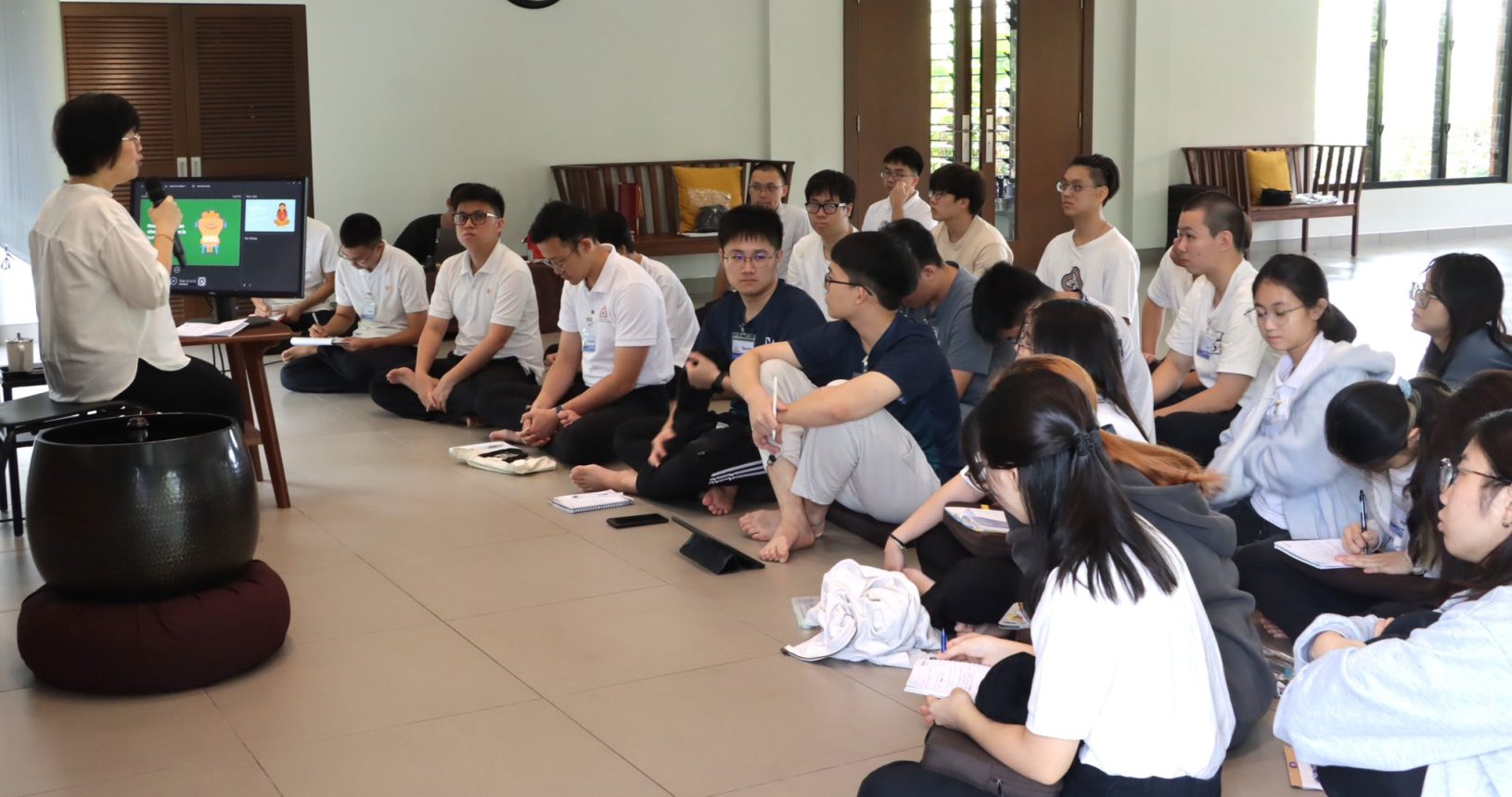Participants also had the opportunity to engage in a lively forum with Bro. Yeo DiSheng, Bro. Ajit Lim, and Sis. Ho Wen Ying, where practical questions about navigating university life, managing pressures, and applying Dhamma in daily challenges were discussed.